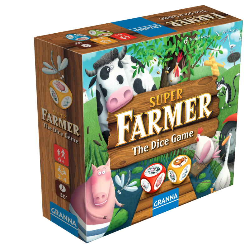 Superfarmář je zpět – tentokrát v kostkové verzi! Oblíbená rodinná hra dostává nový rozměr díky barevným dřevěným kostkám a vtipným ilustracím Piotra Sochy. Vaším úkolem je co nejrychleji získat všechna hospodářská zvířata. Vyhraje ten, kdo dokáže chytře plánovat, rychle reagovat a nenechá se zaskočit nenasytnými predátory.